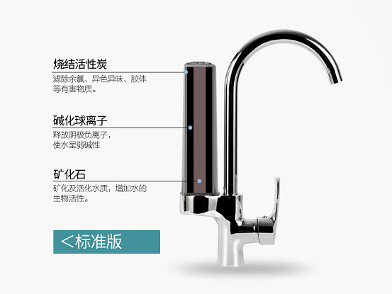 目前大邁在市場上主要有兩種凈水龍頭,一種是廚房凈水龍頭,還有一種是美容保健面盆凈水龍頭,而這兩種凈水龍頭都是把濾芯安裝在水龍頭上的,而且外形美觀、時尚、同時也不失古典風韻。 廚飲兩用機最大特點是,便于安裝,美觀大氣,節約用水。廚飲兩用機為核心的凈水方案,再通過安裝兩個不同水質的用水龍頭,用以滿足廚房不同用水情況的要求。