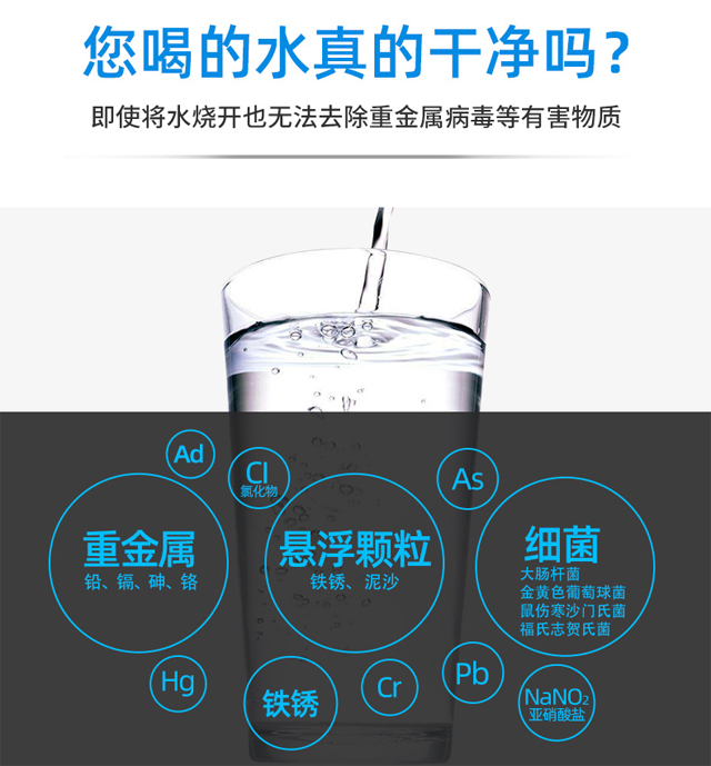 8、純物理過濾,保留水中對人體有益的天然礦物質微量元素,適合長期飲用,更有利于人體健康。